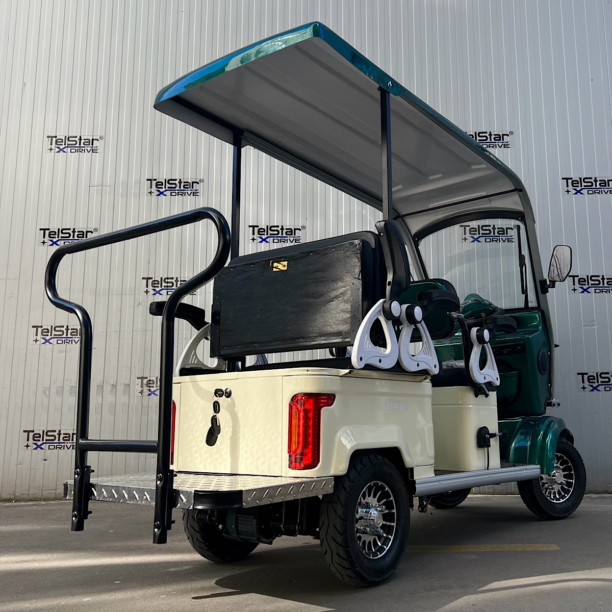 Допълнителна информацияУдобен волан, задно предаване, с диференциал - брой места: 6 - местна, спирачна система: 1 крачна и 2 ръчни спирачки за по-удобно спиране - павна регулировка на скоростта с потенциометър 5км/ч-50км/ч + задна скорост - аварийни светлини - странични светлоотразители - пълна светлинна окомплектовка ( преден двоен LED фар тип ЛУПА , мигачи- предни, задни, стопове, габарити) - клаксон - голяма метална кошница за багаж отпред и луксозна пластмасова кошница за багаж отзад - Подарък- 2 бр. огледала за задно виждане + 2бр. дистанционни с аларма и безконтактно включване + предна пазарска кошница за пазаруване + ГОЛЯМИ карго отделения под седалките за багаж