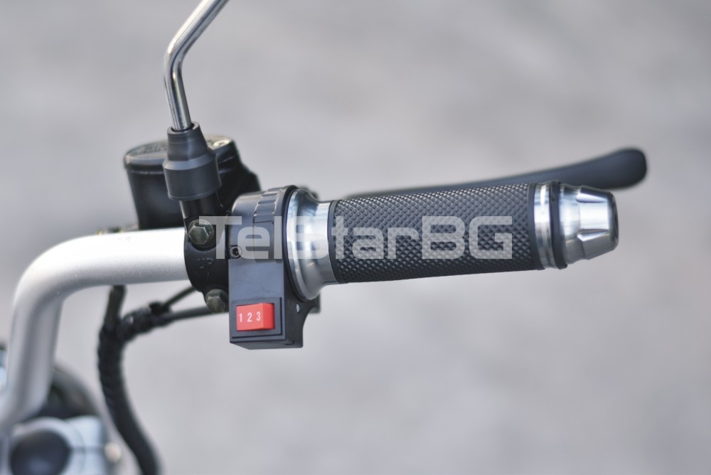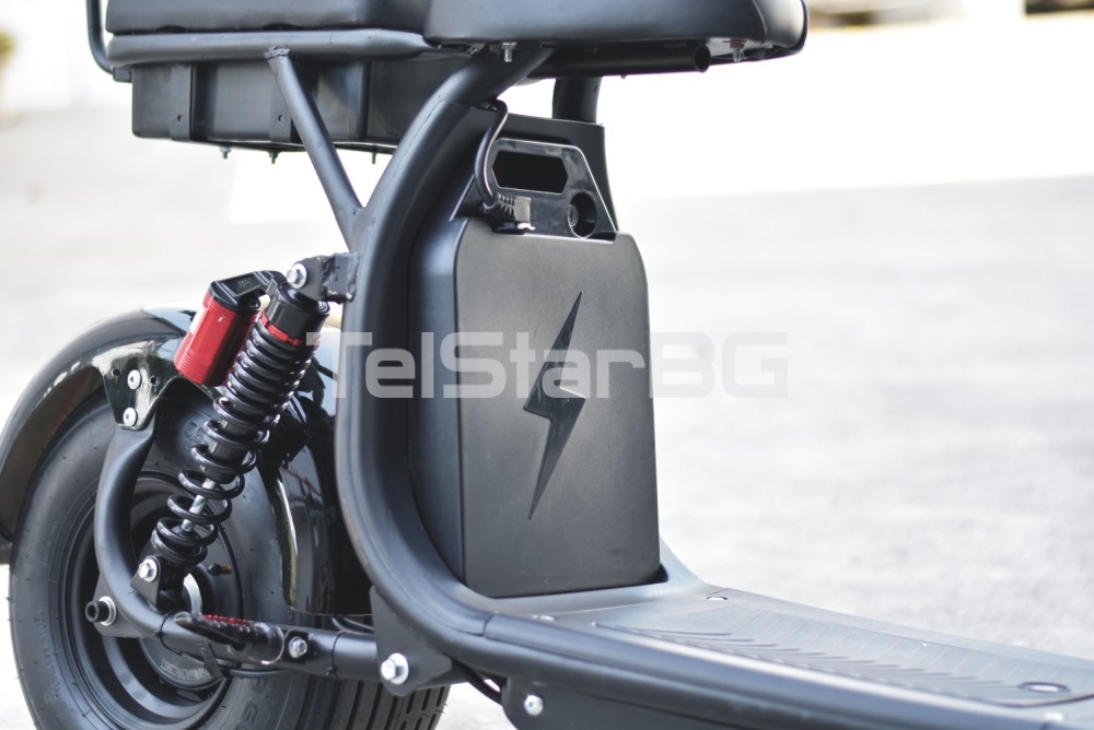 Допълнителна информацияSTART/STOP бутон - двойна задна седалка - предна амортисьорна вилка - телескопични задни амортисьори с големи въздушни цилиндри - дисплей с показание за ниво на батерия, скорост, пробег, моментно напрежение на двигателя, светлини, скорости и др. - пълна светлинна окомплектовка- LED преден фар + габарит, стоп, мигачи - клаксон * Важно: скутера има допълнителен слот под краката с инсталация за поставянето на втора батерия за по- дълъг пробег *Само сега, при закупуване на скутера получавате безплатно и: - USB за зареждане на мобилни устройства - стойка държач за мобилни сутройства - 2 бр. дистанционни с аларма Допълнителни опции: * опция за допълнителна батерия 13Ah +550лв. (+35км. пробег) * опция за допълнителна батерия 21Ah + 750лв. (+60-70км. пробег)