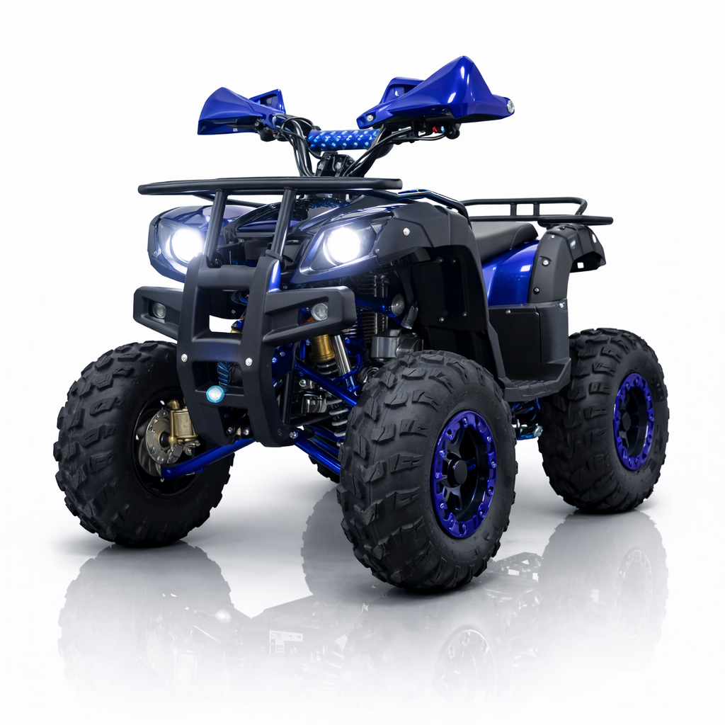 Допълнителна информацияГуми меча стъпка -повишена пороходимост, цифров километраж + индикатор за заряд на батерията бързи и бавни скорости + задна скорост предни мощни LED фарове със степени, LED габарити стоп- фар клаксон трансмисия- с диференциал и кардан предни и задни дискови спирачки декоративни тасове на джантите протектори на ръцете - с включено зарядно устройство в комплекта,