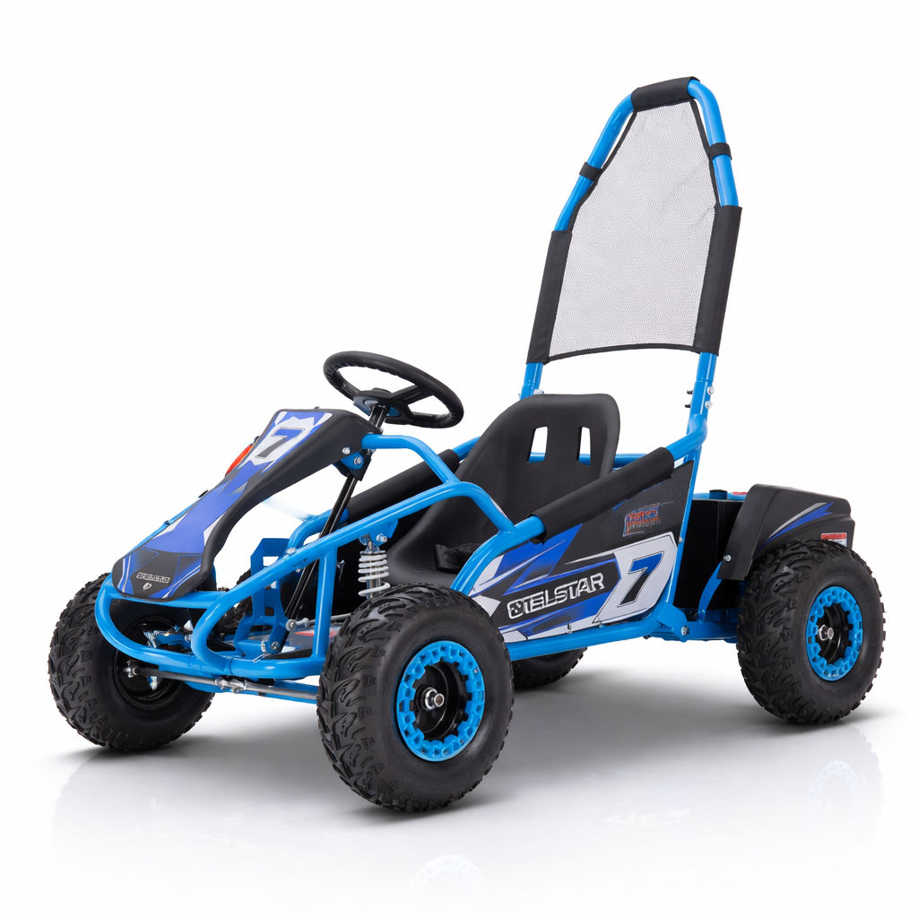 TelStar Kart-08 48V е стабилно и безопасно детско електрическо ATV бъги, създадено за приключения на открито. С удобна седалка, предпазна рамка и офроуд гуми, моделът предлага сигурност и забавление върху различни терени – трева, чакъл или асфалт. Лесно за управление и проектирано специално за деца.