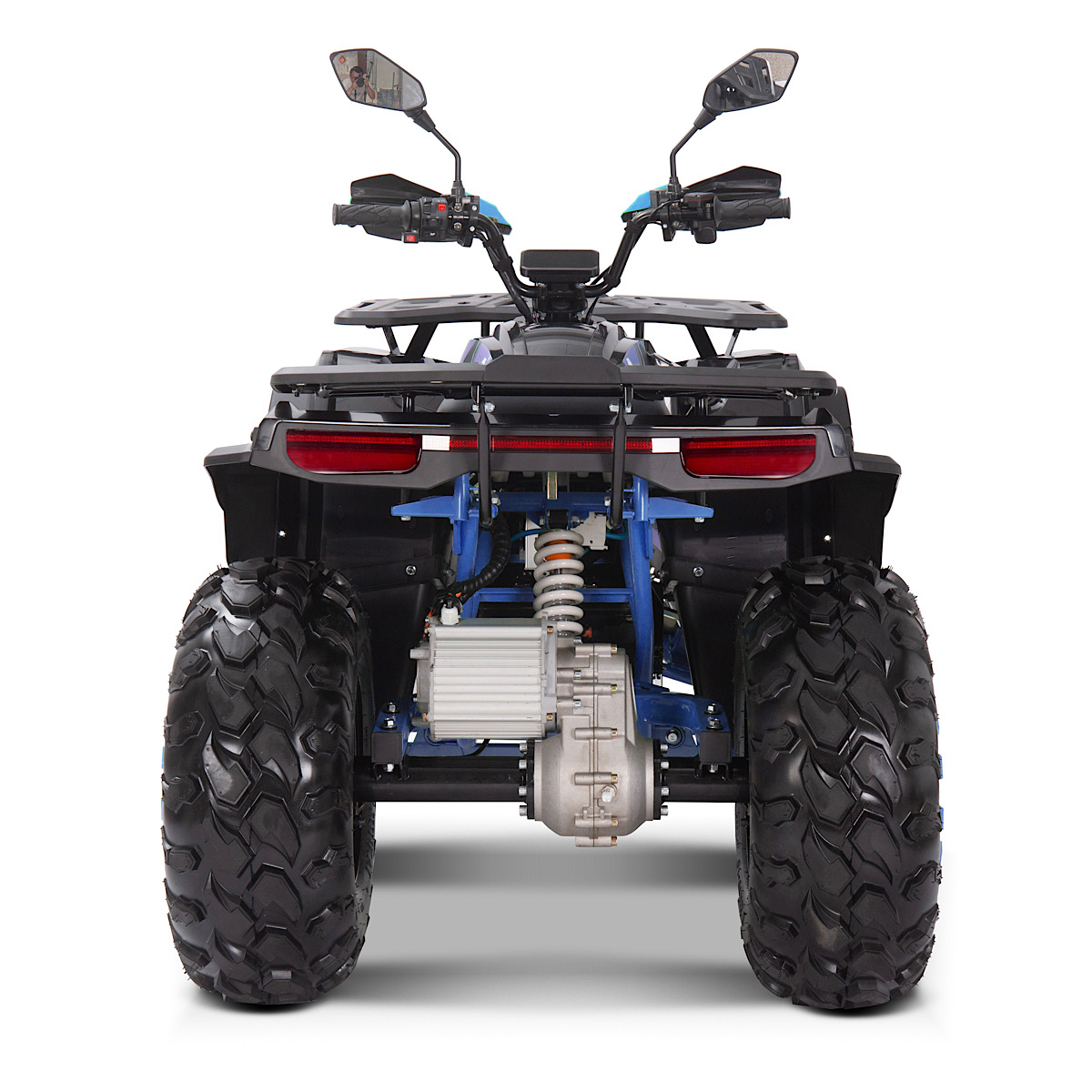 | Допълнителна информация | LED LCD голям цифров дисплей с километраж + индикатор за заряд на батерията + изминато разстояние + 4 скорости + задна скорост + предни мощни LED фарове със степени + допълнителен ЛЕД бар + LED габарити + стоп + фар + клаксон + гуми с нов модел грайфер -повишена пороходимост + трансмисия- с диференциал и кардан + електронна DOWN HILL + ръчни предна и задна дискови спирачки + декоративни тасове на джантите + протектори на ръцете + включено зарядно устройство в комплекта |